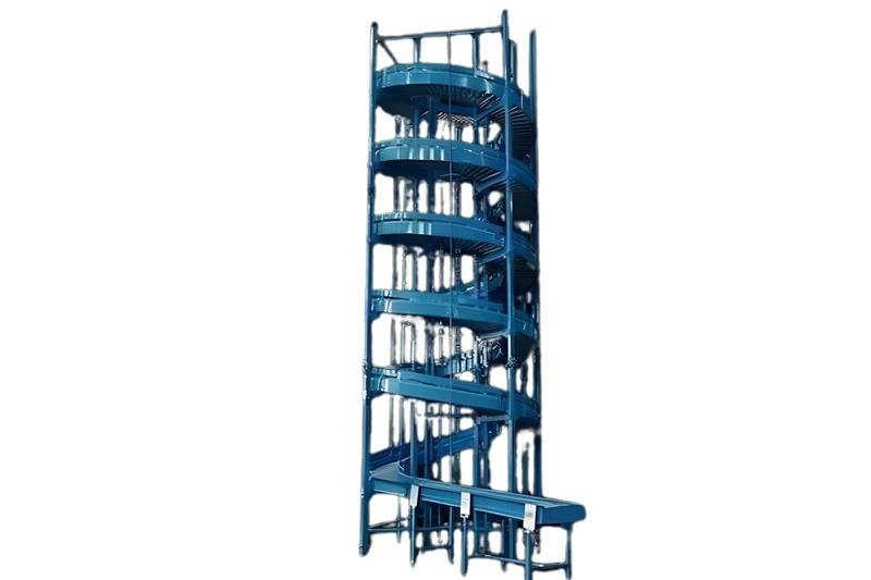 A space-efficient gravity-driven solution designed to smoothly and safely move products between multiple floor levels using a continuous spiral path, reducing handling time, labor effort, and energy costs while improving workflow efficiency.