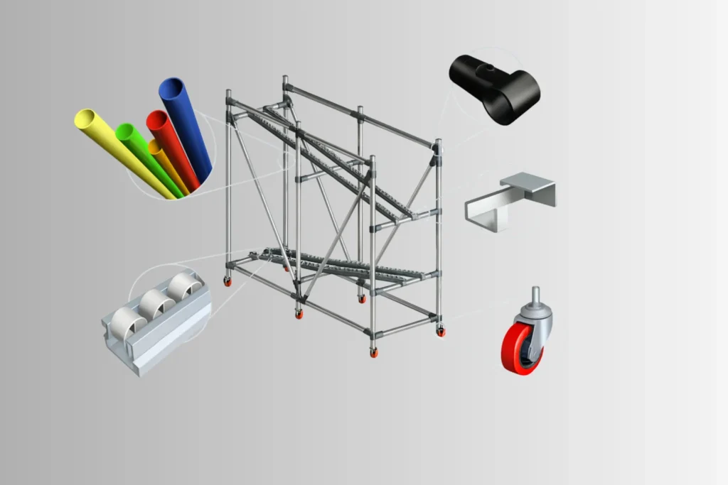 Pipe & Joint System is a material storage & handling solution, used world wide by replacing the systems of welded constructions. It comprises of specially made GOBLIN PIPES (ERW1-IS 3074) covered with ABS RESIN and the SS PIPES. A variety of JOINTS also go into the making of rack, trolleys, carts, worktables etc…